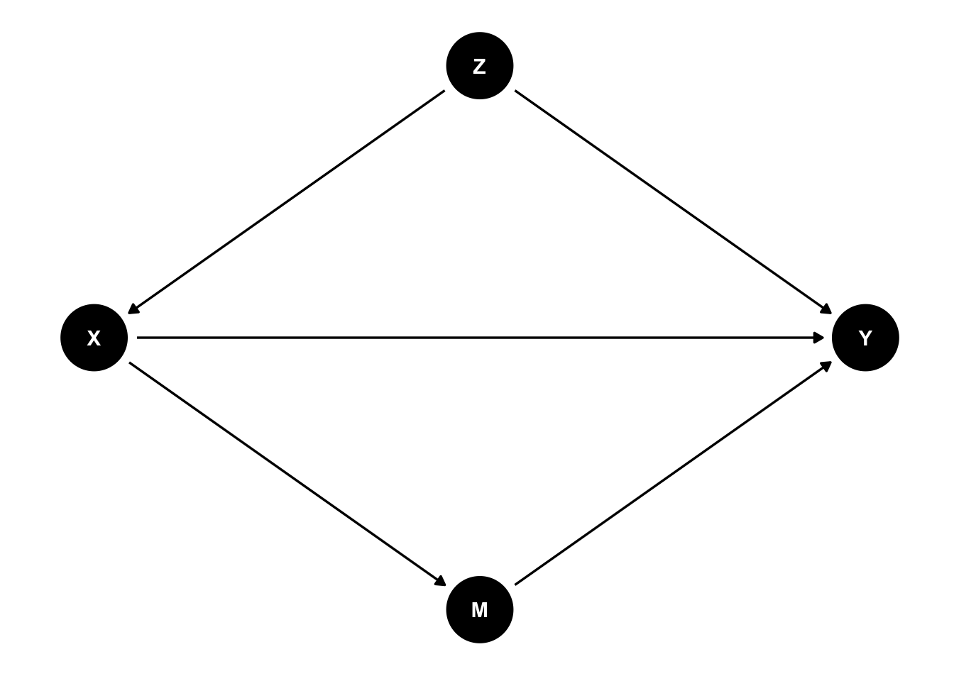 XがYに与える効果に関心がある場合、次のような変数を統制すべきである。